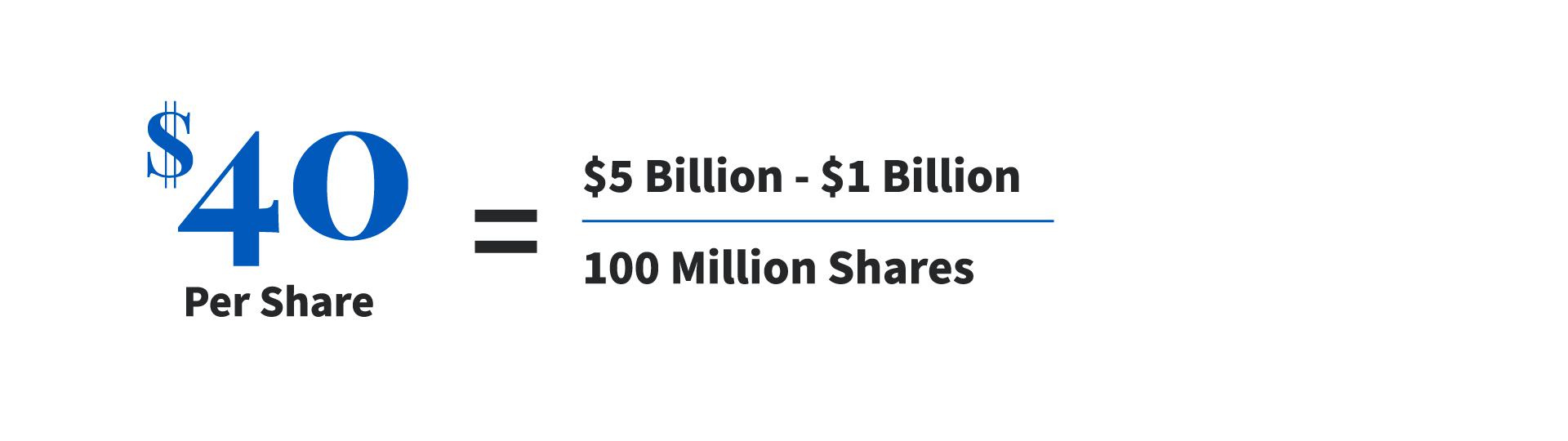 For example, consider a private real estate fund with assets worth $5 billion, liabilities worth $1 billion, and 100 million shares.