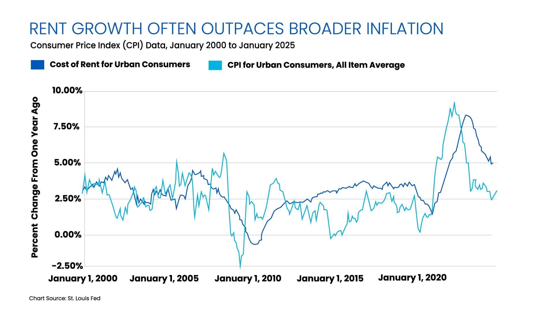 5Consumer Price Index for All Urban Consumers: Rent of Shelter in U.S. City Average. St. Louis Fed. February 2025.
