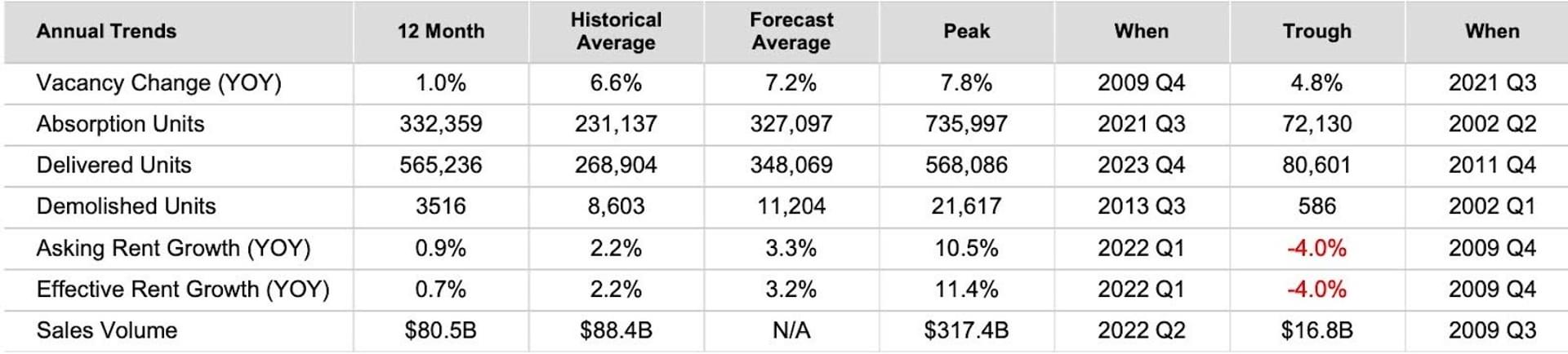 Some markets will experience short-term oversupply, but I don’t expect that to last for long, and most markets will absorb available rental stock by the end of 2024. Yes, there’s an estimated 440,000 new units coming online this year4. That may seem like a lot to absorb but not when you look at long-term demand. The US is expected to need 4.3 million more apartments by 2035, according to the National Multifamily Housing Council (NMHC). Divide that by the next 10 years, and that’s an average of 430,000 units needed per year. So we’re actually right on target this year—though we’ll need to play catchup when deliveries in 2025 begin tapering off.