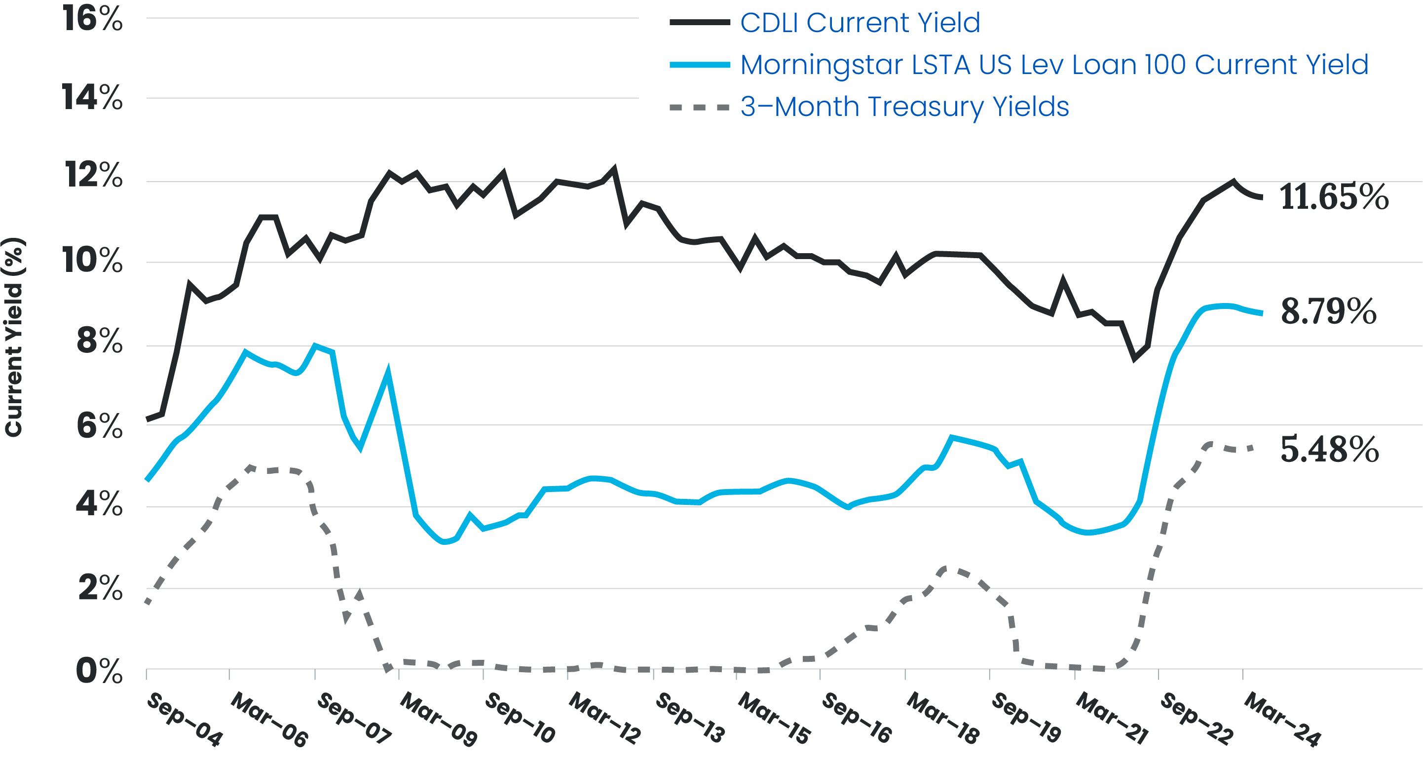 If this prediction materializes, what will be a risk for borrowers could spell opportunity for private credit lenders. Higher rates at the short end of the treasury yield curve could elevate the yields of the longer-term treasuries used to price private loans. This, in turn, could help sustain the high yields earned by private credit investors for longer.