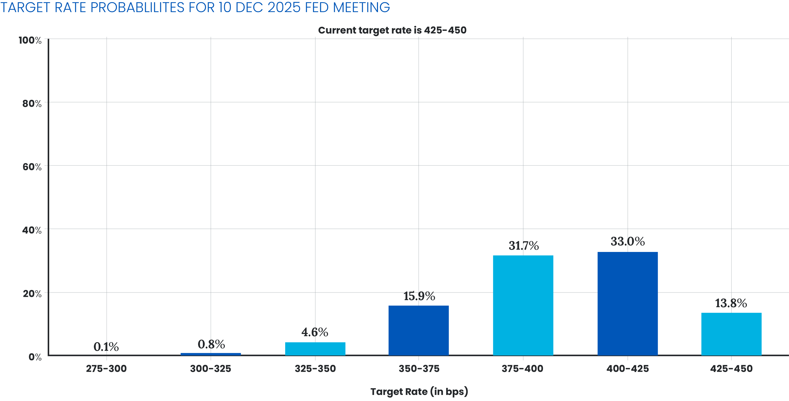 Could there be more than two rate cuts over the next twelve months? It’s unlikely—but not impossible. With a 15.9% chance of a 75 basis point decline and a 4.6% probability of a full percentage point cut by the end of 2025, the consensus view, at least for now, seems to be a matter of when (and how sharply) the Fed will lower rates—not if.3