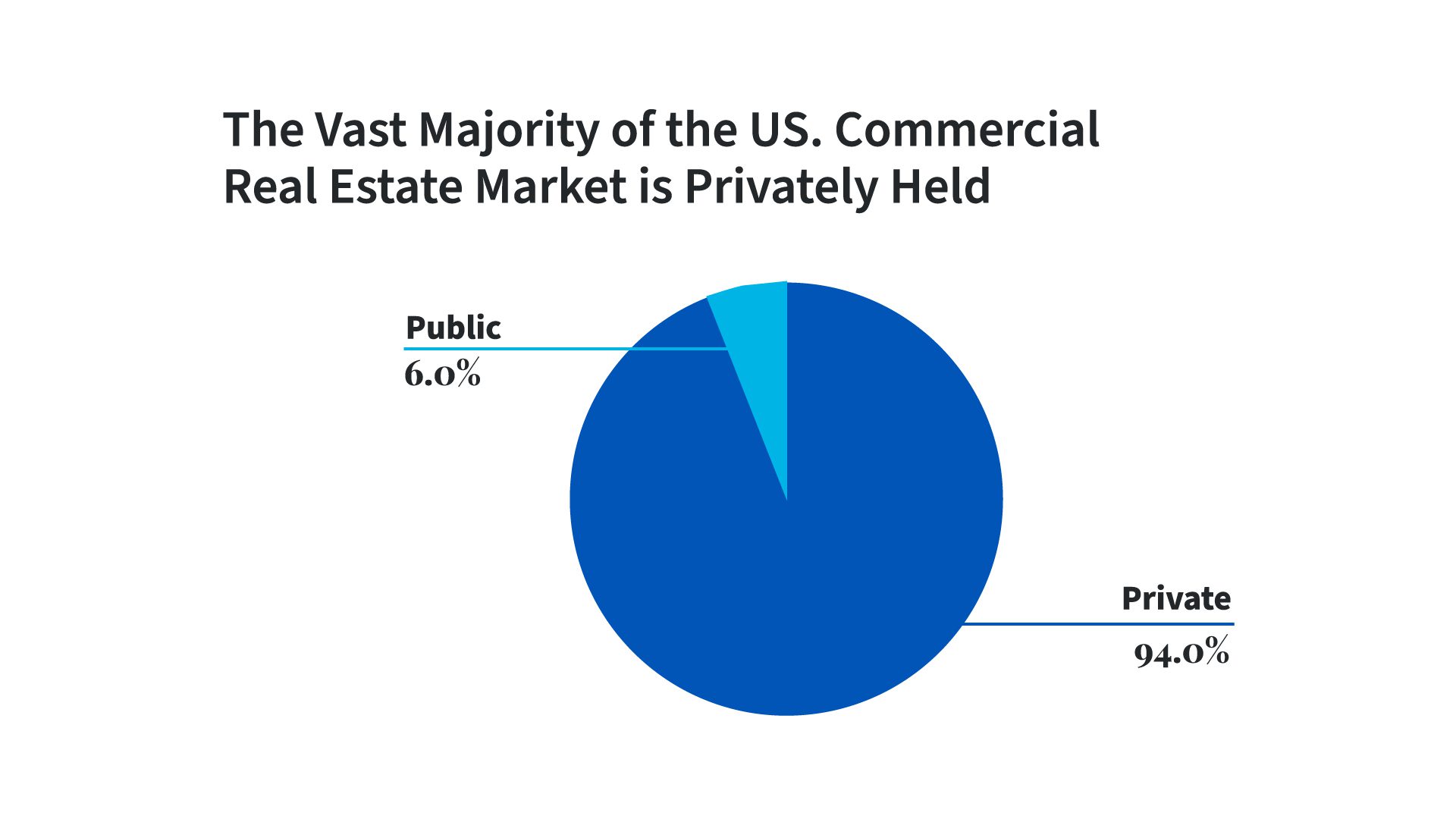 But the public market is just a small fraction of the $24 trillion American real estate market. In fact, 94% of all commercial real estate in the United States by value is privately-owned—whether held in private real estate funds or owned outright by institutions, companies, or individuals.5