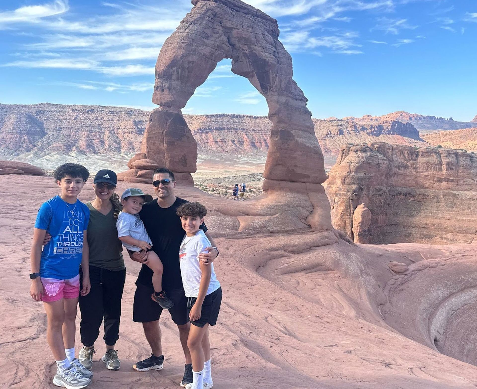 Near Moab, Utah, we did a family hike in the Arches National Park to the Delicate Arch. It’s a 52-foot-tall freestanding, natural sandstone arch that local cowboys once called “the Chaps” thanks to its unique shape.